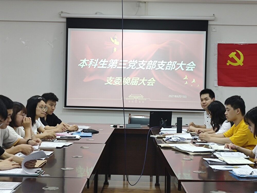 6月15日,太阳集团2138网址本科生第三党支部在雁山校区12407会议室召开党支部委员换届大会,选举产生新一届的支部委员。会议由支部书记孙云龙老师主持。