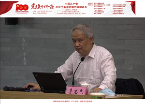 此次云党课由党史学习教育中央讲团成员、中共中央党史研究室原副主任李忠杰教授主讲。课上,李忠杰教授系统回顾了中国共产党在民主革命时期的风雨征程,深刻阐述了中国共产党在领导人民进行新民主主义革命的伟大实践中所形成的以民族独立和人民解放为核心的伟大民族革命精神,再现了中国共产党人为中国人民谋幸福、为中华民族谋复兴的初心使命。李老师从历史的多方面角度深刻思考和总结了中国共产党在民主革命时期的精神谱系,并从“红船精神”“遵义精神”“长征精神”“抗战精神”等方面向广大党员阐述了这些精神谱系,让大家深刻了解到民主革命时期中国共产党的历史和精神。