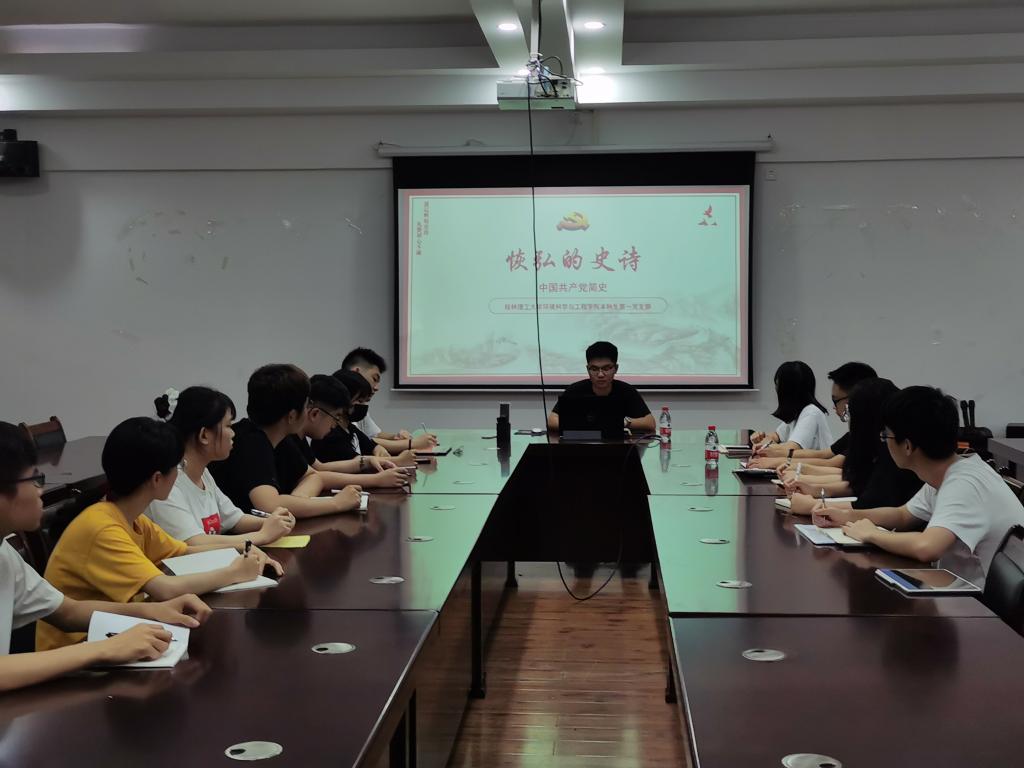 6月30日下午,太阳集团2138网址本科生第一党支部在雁山校区萃华楼12407会议室开展党史学习教育主题党课,全体党员同志参加活动,本次活动由党支部书记潘泓序主持。