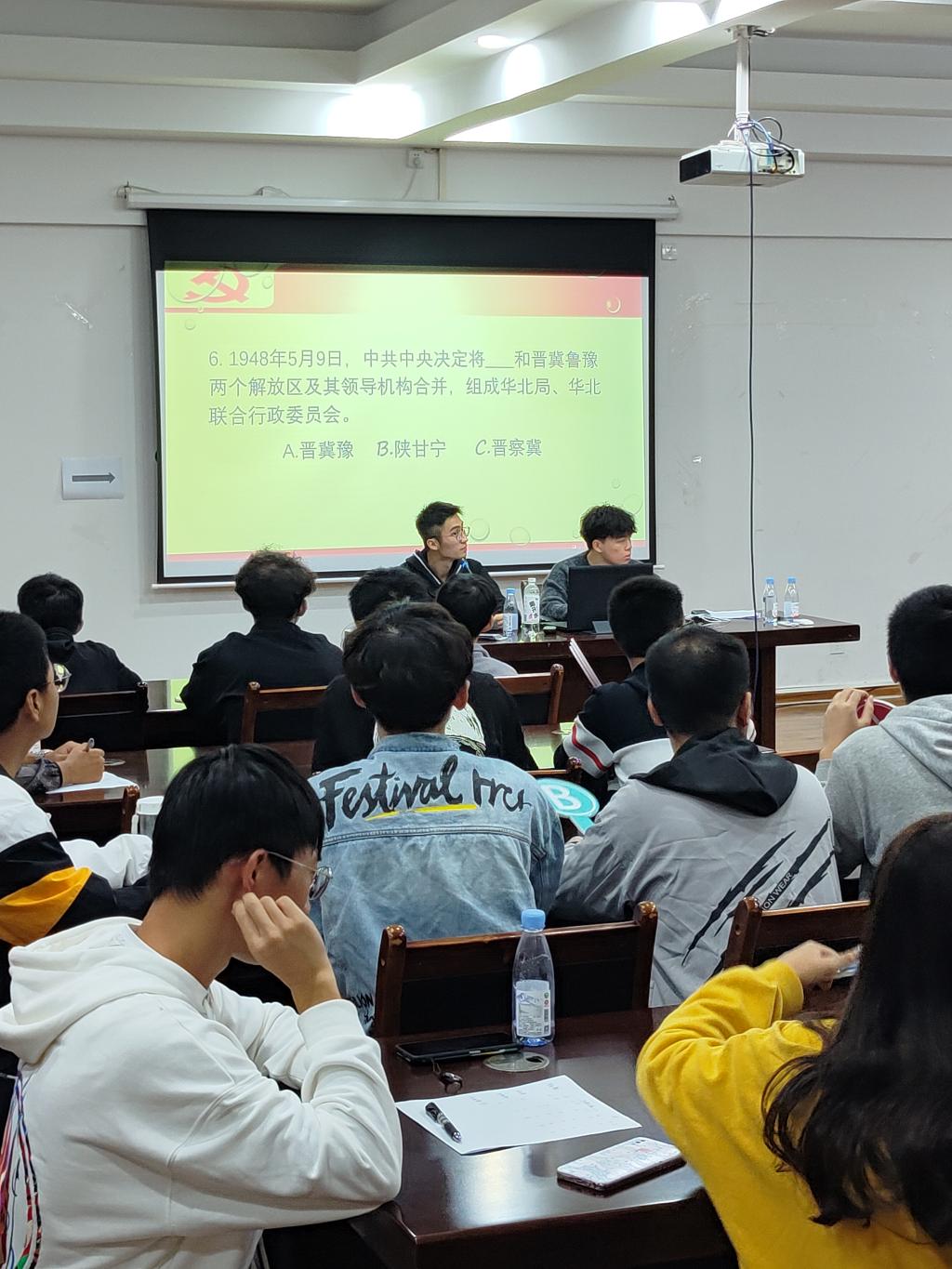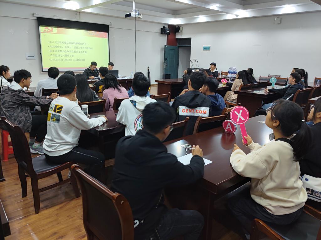 本次竞赛分为“单选题”“多选题”“判断题”“风险题”四部分,比赛内容既涉及建党以来的重大事件,又有广西建党革命的相关知识,也有关本校建校历史。比赛中,同学们认真思考,队友间相互讨论,比赛气氛十分浓厚。通过层层角逐,共有16支队伍闯入决赛。
