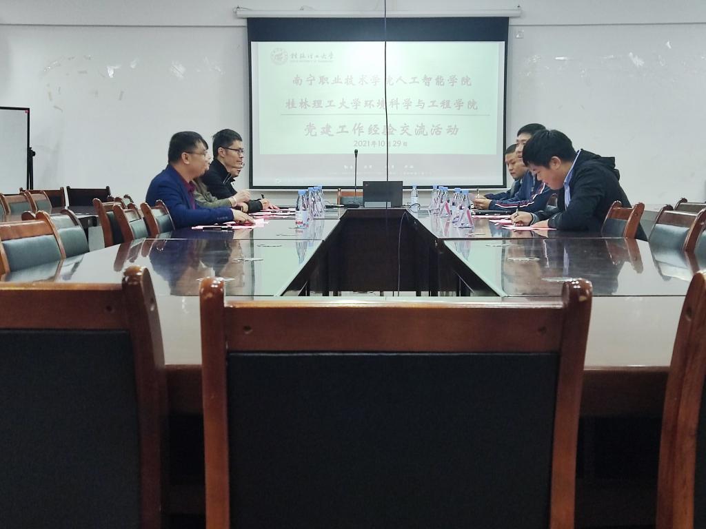 为进一步加强和改进党建工作,促进党建工作持续提升、平衡发展,10月29日,南宁职业技术学院人工智能学院党委副书记伍玉凤一行来太阳集团2138网址进行党建工作经验交流活动,太阳集团2138网址党委副书郝文佳出席,会议由学院专职组织员杨平平主持。