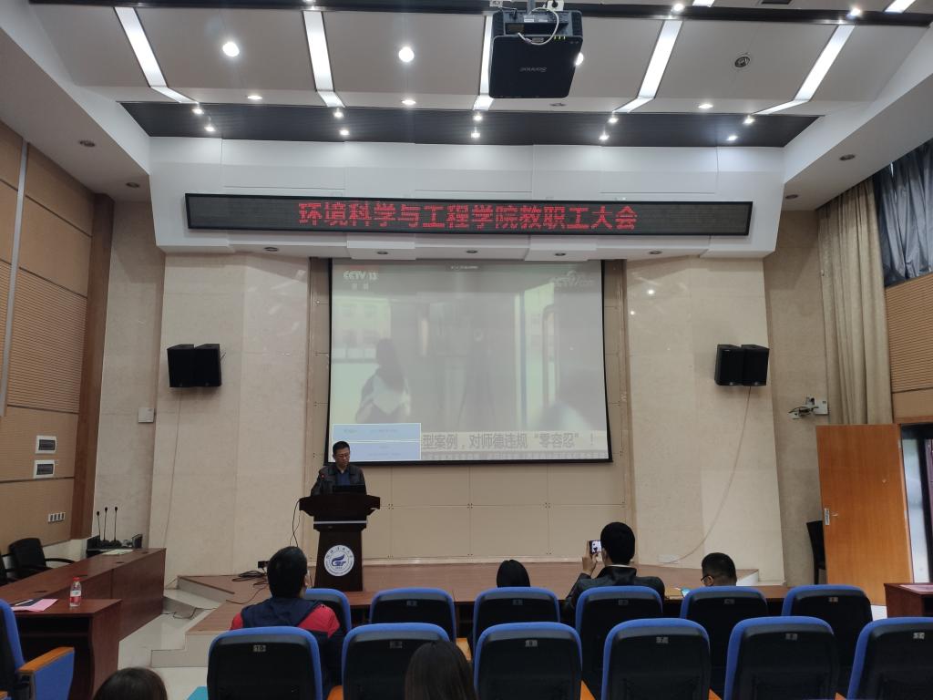 会上,首先,组织全体教职工认真学习了习近平总书记关于教育的重要论述和全国教育大会精神,深入落实《中共中央 国务院关于全面深化新时代教师队伍建设改革的意见》,推进实施教育部等七部门《关于加强和改进新时代师德师风建设的意见》,教育部下发的《关于在教育系统开展师德专题教育的通知》(教师函〔2021〕3号)、《新时代高校教师职业行为十项准则(教师〔2018〕16号)》等重要文件精神。其次,认真学习贯彻习近平总书记给全国高校黄大年式教师团队代表回信精神,姜书记强调到,要牢记为党育人、为国育才使命,大力学习弘扬黄大年精神,坚持为学为事为人相统一,推动学院教学科研育人各项事业高质量发展。最后,组织全体教职工观看《新闻1+1》八起典型案例,姜书记指出,大家从反面案例入手,警示我们保持对教育事业的忠诚心和纯洁心,不要因小失大,做一个踏实肯干浑身散发正能量的新时代教书人。