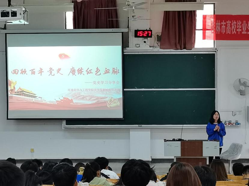 最后,主持人唐祺富总结到:我们大学生应当学史明理、学史增信、学史崇德、学史力行,历史是最好的教科书,党史是最好的思政教材。通过学习党史,让红色传统、红色记忆、红色基因牢牢植入大学生心灵,牢固树立社会主义核心价值观,培养教育他们爱党、爱国、爱社会主义的思想情感。