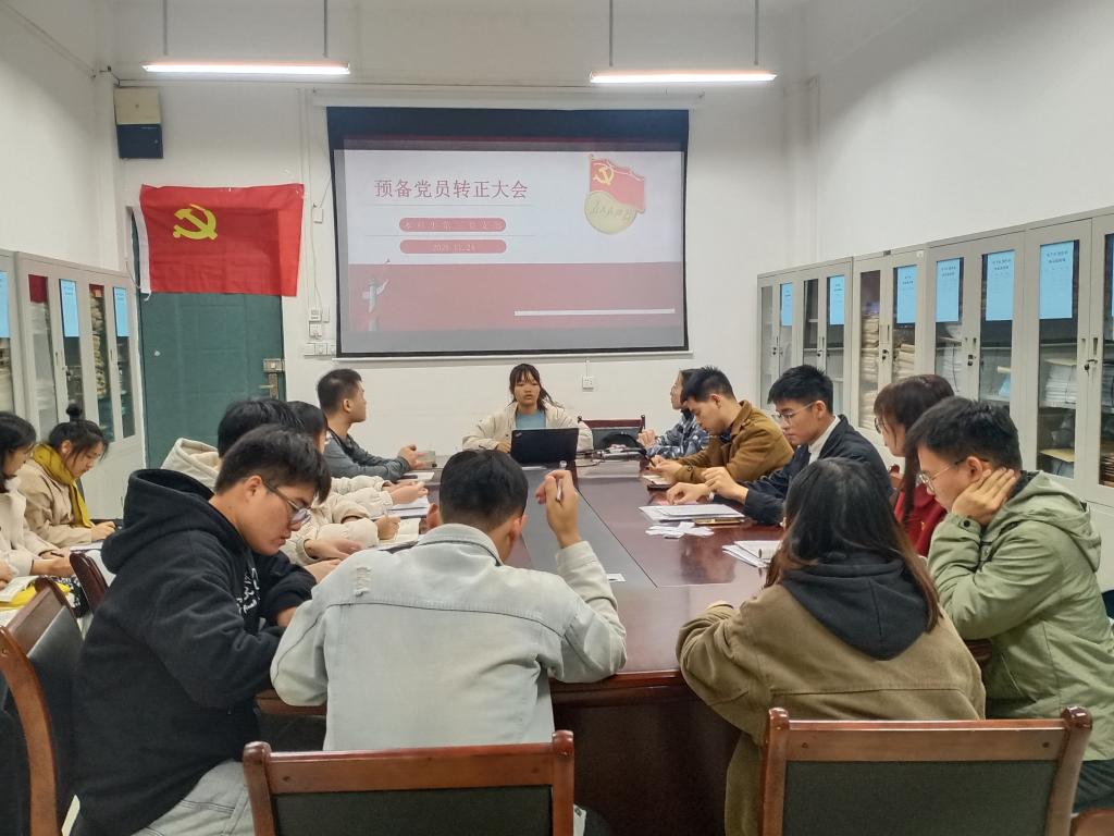 为进一步健全支部组织建设,增强支部生机与活力,11月24日,太阳集团2138网址本科生第三党支部于雁山校区12414会议室召开支部预备党员转正大会,支部书记孙云龙老师及支部全体党员参加本次会议,会议由党支部副书记韦春伊同志主持。会议讨论有关中共预备党员王蓉等三名同志按期转正成为中共正式党员的问题。