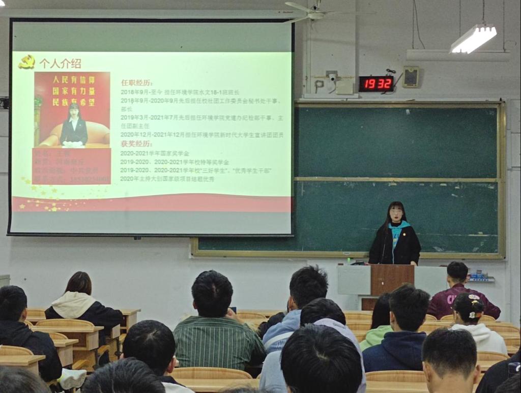宣讲会开始,王蓉同志带领大家一起学习了《论中国共产党历史》一书。之后她向大家分享了自己的学习经验,其中重点概述了自己是如何合理地安排时间、规划好待办事项以及如何处理好学习与社团工作之间的冲突。最后,向同学们分享了自己对中国共产党以及党的百年历程的认识,希望同学们能够积极入党,为我们的国家做出奉献。在最后的提问环节,王蓉同学针对同学们提出的疑问进行了逐一解答,现场氛围高涨。