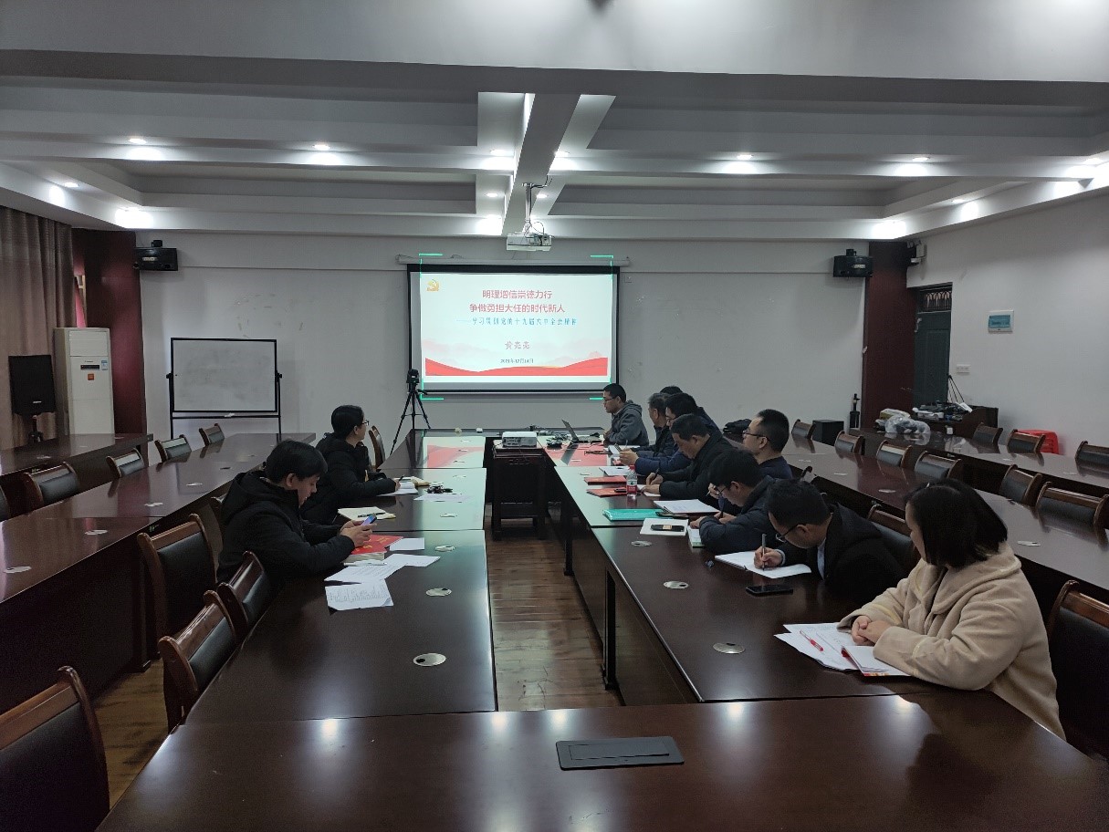 2021年12月14日下午,环境教工三支部开展了十九届六中全会精神学习党课。会议以“线上+线下”混合模式开展,线下会议在雁山校区12407开展,线上以腾讯会议方式参会,本次党课由黄亮亮同志主讲。