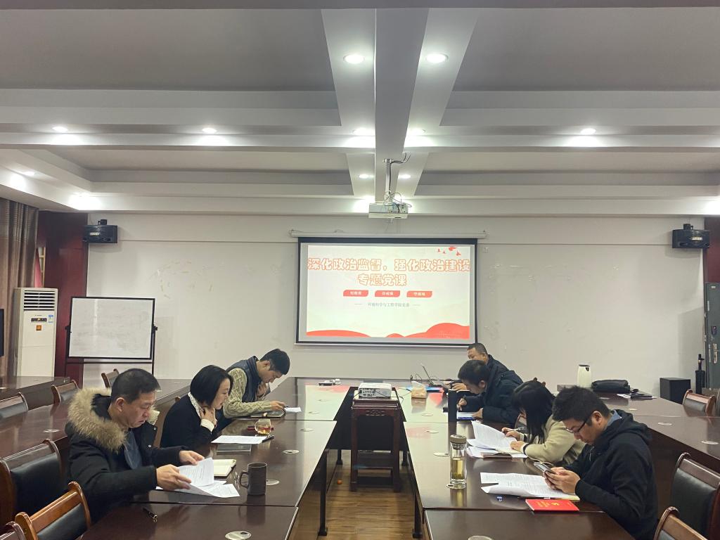 12月20日上午,太阳集团2138网址在雁山校区萃华楼12407会议室开展开展“深化政治监督,强化政治建设”专题党课。学院党委书记姜子亮担任主讲,学院全体党政领导班子出席了本次会议。