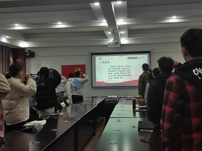 最后,由支部书记巩宇飞老师对本次活动进行总结,强调在之后的学习生活中要牢记初心使命,作为一名新时代的大学生党员要带领同学们不断提升自己,早日投入到实现中华民族伟大复兴事业中去。