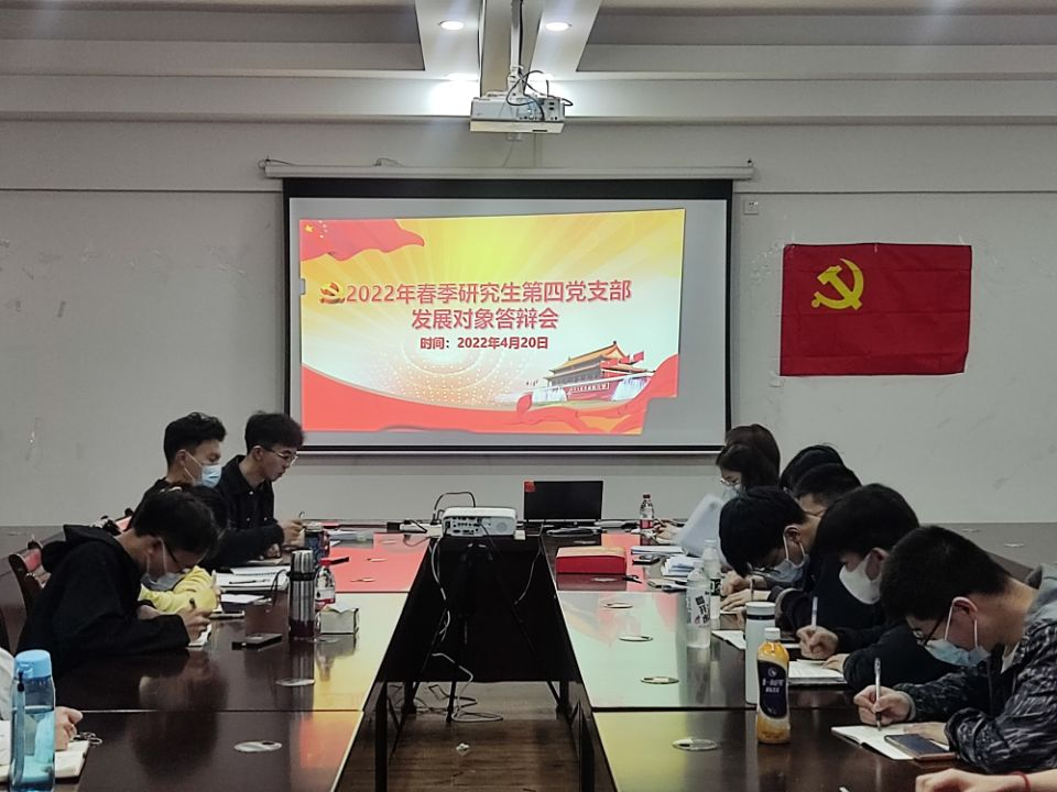 为做好2022年下半年的党员发展工作,按照党总支要求,2022年4月20日,太阳集团2138网址研究生第四党支部在雁山校区12407会议室召开2022年春季发展对象答辩会。全体党员参加本次会议,会议由党支部副书记石谦主持开展。