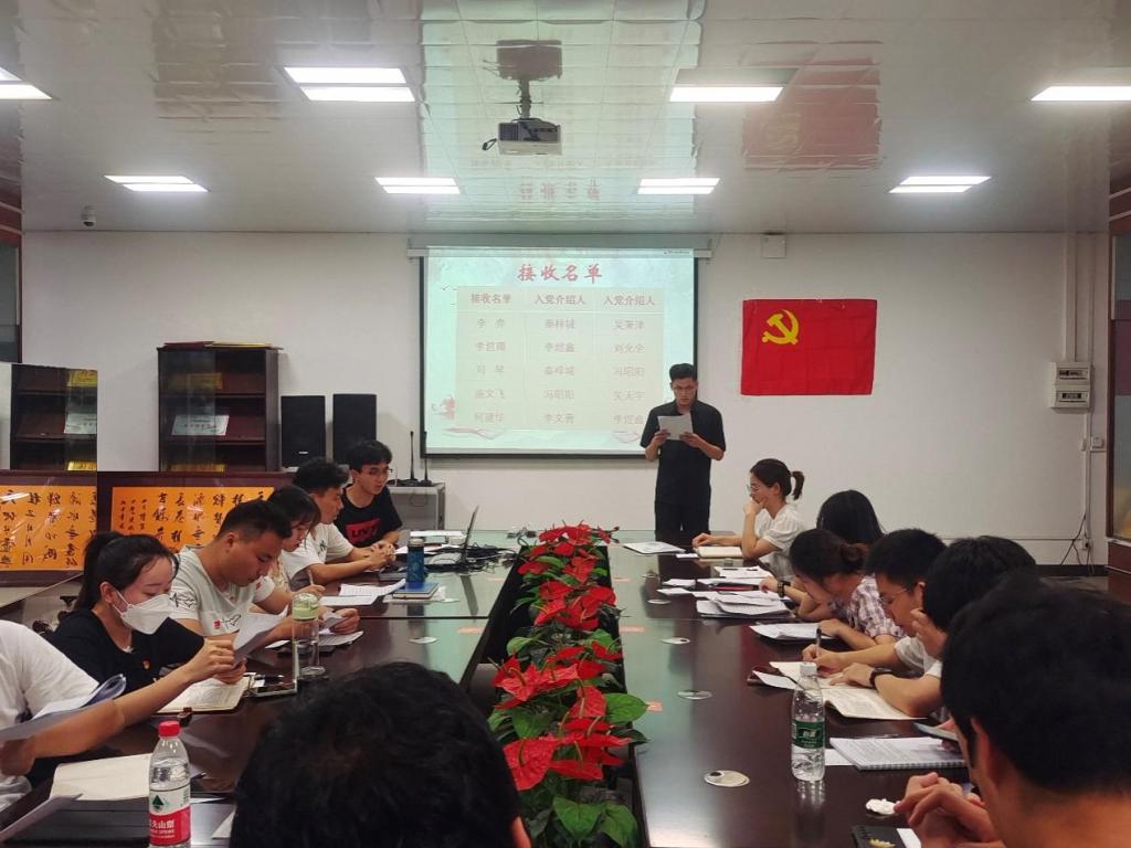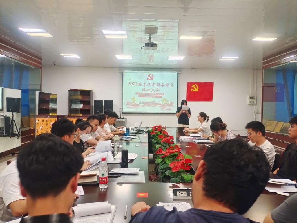 按照春季党支部发展党员工作安排,2022年6月8日,太阳集团2138网址研究生第四党支部在雁山校区12310会议室召开预备党员接收大会,支部全体同志参与本次大会,会议由支部副书记石谦主持召开。