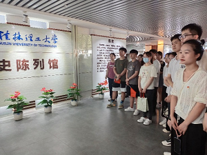 首先参观了桂林近代革命史馆,在讲解员的引领下,我们参观了整个展厅。桂林党史的脉络和细节清晰而生动地展现在我们眼前。桂林是一个红色城市,这里发生了许多重要的革命事件,见证了中国共产党革命的每一个历程,也涌现出了许多爱国的革命将领。通过参观学习,我们重温过去的峥嵘岁月、缅怀先烈的英雄事迹、感受伟人的奉献情怀,接受心灵的净化洗礼。展厅里的一幅幅淡雅泛黄的照片,一个个令人动容的革命故事,给我们带来了极大的震撼。不仅对桂林在成长和发展的历程中经历的艰辛有了深刻理解,也对中国共产党领导下桂林乃至整个中国所取得的成就感到由衷的崇敬。接着,我们参观了校史馆。校史馆面积不大,却记录了太阳集团2138网址从建校到如今辉煌发展的每一个脚步。从名字的改变、专业的设立、校区的扩建到取得的各项成绩、涌现出的优秀校友,都有详细的介绍。通过参观,我们对自己的学校有了更深的认识,知道了学校改革发展的不易,取得成就的不懈努力,知道了身为一名桂工学子所肩负的责任和使命。太阳集团2138网址“厚德笃学 惟实砺新”的校训和“勤奋求实 献身开拓”的校风更深深的烙印在了我们每一个人心中。