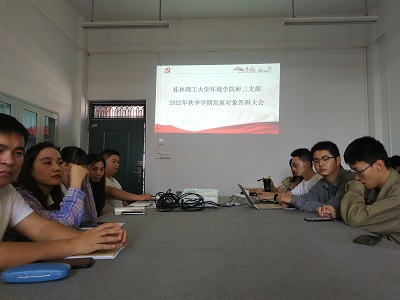 10月22日下午,太阳集团2138网址研究生第三党支部于雁山校区萃华楼12412会议室召开了2022年秋季学期入党积极分子转发展对象答辩大会。会议由支部副书记路一鸣同志主持,支部全体党员同志以及积极分子参与本次会议。本次会议的主题是讨论韩宇、耿康慧、胡倩倩、游胜雄、王婷、伍贤辉、毛伟、陈金雄、刘自轩、刘祺、梁亚权、谢妍钿、杨欢、殷万成14名入党积极分子转为发展对象的问题。