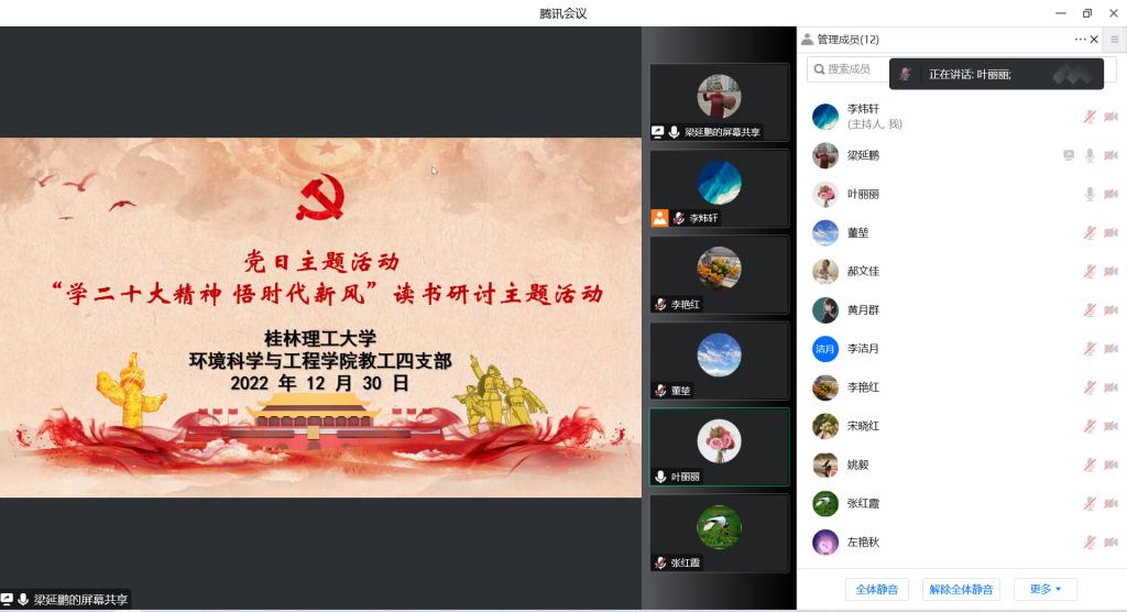 习近平总书记在党的二十大报告中指出:“中国共产党第二十次全国代表大会,是在全党全国各族人民迈上全面建设社会主义现代化国家新征程、向第二个百年奋斗目标进军的关键时刻召开的一次十分重要的大会。”为认真学习贯彻党的二十大精神,2022年12月30日,太阳集团2138网址教工四支部于线上开展党日主题活动:“学二十大精神 悟时代新风”读书研讨主题活动。本次党日主题活动由党支部书记梁延鹏主持。