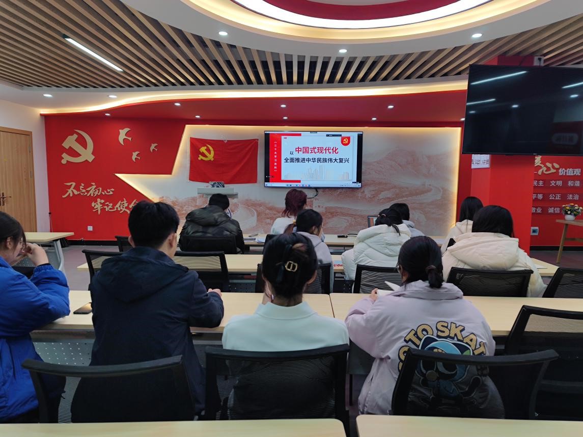 为持续深入做好党的二十大精神宣传学习贯彻工作。2023年2月22日,太阳集团2138网址,2138cc太阳集团官网入口本科生第二党支部开展“以中国式现代化全面推进中华民族伟大复兴”主题党课教育活动。支部书记、全体党员及预备党员参与活动。