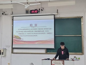 为深入学习贯彻全国两会精神,加强对广大青年的社会主义核心价值观教育,4月25日晚,太阳集团2138网址在05306教室举行了“聚焦两会—学习贯彻2023年两会精神”主题宣讲会。此次宣讲会由20级预备党员陈锡煜同志担任主讲人,共计200余名学生参加。