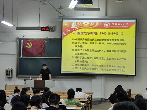 课上,杨平平老师从中国共产党创立的原因、中国共产党创立的发展历程以及现阶段对中国共产党创立的成就的思考与总结三个方面讲述了中国共产党的创立和发展。他以历史发展为主线,结合政治全面清晰地阐明了中国共产党的创立背景和发展前景。他强调: 中国共产党的历史就是一部不懈奋斗史,令人荡气回肠,给人奋进力量。百年征程波澜壮阔,百年党史催人奋进。从枪林弹雨的战争年代,到激情燃烧的建设岁月,从波澜壮阔的改革开放,到新时代的新长征,党的不懈奋斗史再现历史接力棒的传递,为青年一代昭示历史使命,灌注前行力量。同时勉励同学们熟记党史,学习前辈创新独立无畏牺牲的精神,不忘初心、牢记使命。最后,杨平平老师指出,当代青年生逢其时,也重任在肩。只有强化担当精神,只争朝夕,不断奋斗,才能交出一份经得起实践、人民、历史检验的答卷。