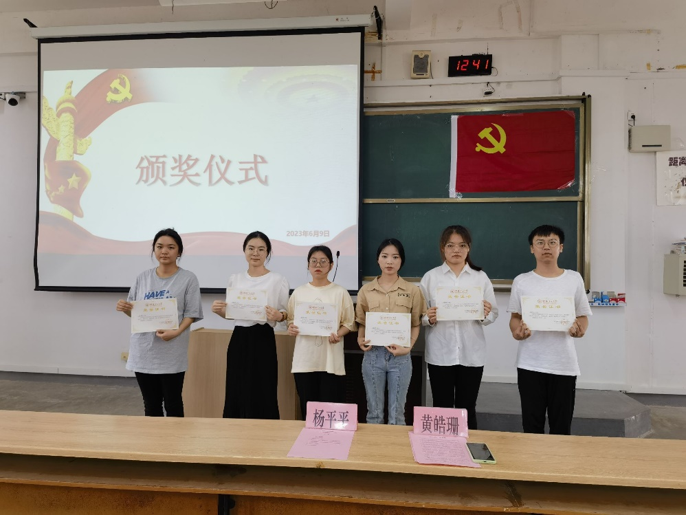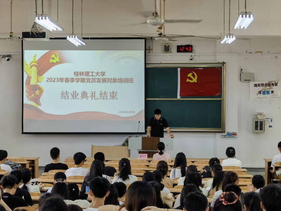 典礼开始,首先全体成员起立,奏唱国歌。其次,由优秀学员代表李湘发言,她表示发展对象们应该树立正确的入党动机,拥有持久不衰的动力,刻苦学习。同时要把对共产主义事业的忠诚同执行党的基本路线统一起来,在改革开放和现代化建设中积极做出贡献。随后,由太阳集团2138网址党建组织员、党建办公室主任杨平平老师作结业总结,他总结了培训成效,同时希望和要求发展对象要树立坚定理想信念,提高自身党性修养,确定终身学习理念,提高自身综合素养,注重理论联系实际,提高自身工作能力,在工作上创佳绩、争先进、做表率,以优异成绩接受党组织的考验。最后,由杨平平、黄皓珊老师对优秀学员进行颁奖。