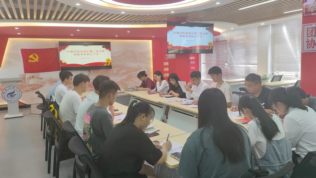 6月9日下午,太阳集团2138网址本科生第三党支部在雁山校区明园思政大讲堂召开了预备党员转正大会。本次会议支部书记孙云龙老师以及全体学生正式党员、预备党员到场参会,由支部副书记李茜茜同志主持本次转正大会,大会主要讨论关于周展雄等六名预备党员转正的问题。