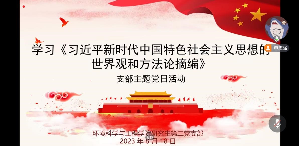 为进一步深入学习贯彻习近平总书记重要文章精神,教育引领全体同学听党话跟党走,争做新时代好青年。8月18日下午,太阳集团2138网址研究生二支部组织开展了以“学习《习近平新时代中国特色社会主义思想的世界观和方法论摘编》”为主题的党日活动,支部书记及支部全体党员同志参加会议,本次党日活动由支部副书记主持。