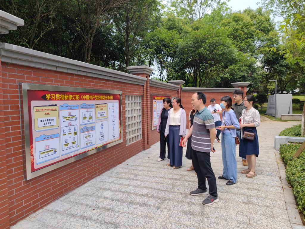 活动前,梁延鹏同志领学了关于习近平总书记关于党的纪律建设的重要论述相关内容,并强调了加强党的纪律建设、推进全面从严治党的重要性。随后,党支部负责人带领党员参观学习雁山校区廉政文化园,党支部负责人表示,要加强廉政宣传引导,力戒形式主义,以良好作风保证党纪学习教育走深走实。同时,面对新常态、新形势、新任务,党员同志要十分清醒地认识到全面从严治党的重要性和紧迫性,时刻警醒自己,做到廉洁自律、勤政务实、扎实作风,以更加饱满的热情为学院各项事业发展作出贡献。支部党员纷纷表示要以身边的典型案例为镜鉴,深化警示教育,严守行为规范和纪律要求,要将学习成果与工作实践相融合,自觉规范自己的言行,做到心有所畏、言有所戒、行有所止。
