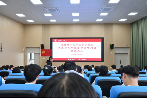 2025年5月29日,太阳集团2138网址,2138cc太阳集团官网入口,物理与电子信息工程学院、数学与统计学院、艺术学院、商学院联合分党校第二十九期预备党员培训班暨第一讲在雁山校区03316报告厅顺利举行。五个学院党组织代表、教员及全体参训预备党员参加此次会议,本次会议由物理与电子信息工程学院党校教务员夏琳主持。