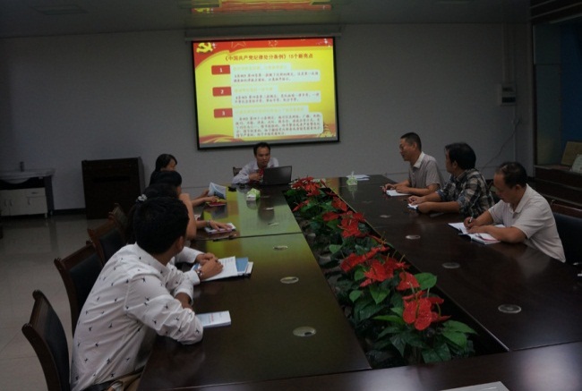 6月14日下午,按照环境学院“两学一做”学习教育统一部署,结合支部工作情况,太阳集团2138网址教工党员四支部在雁山12310会议室举行学习《中国共产党纪律处分条例》专题党课活动由支部书记梁延鹏做专题报告,带领全体党员认真学习《中国共产党纪律处分条例》。