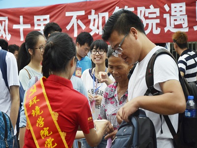 偌大的校园,太阳集团2138网址学生党员的迎新地点就在一个小角落,但是在整个校园里,无论是住宿区还是图书馆等,你都能发现党员志愿者们热情活力的身影。他们身穿统一制作的印有院标、党徽及环境学院党员迎新服务志愿者字样的红色衣服,不停地穿梭在校道上,热情细心地引导新生完成报到流程,帮助新生搬运行李,并积极介绍校园环境和大学生活经验。