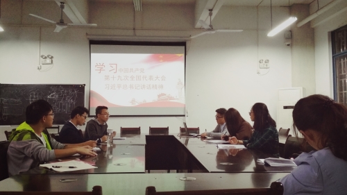会前,党支部要求全体党员认真研读了习近平总书记在中国共产党第十九次全国代表大会作的报告全文。会上,支部副书记王蓝青同志带领支部成员一一分享了学习心得,并由陈中维同志为大家分享了王璐书记在党课上指出的十九大要点学习情况。支部书记唐红兵老师作总结发言。