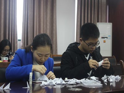 随后,各支部预备党员代表上台介绍本支部的手工艺品,并且都各自介绍了手工艺品的制作寓意。其中,以学生三支部为代表的手工品寓意新颖深刻,学生三支部代表说道:“用鞋带,瓶子制作的花瓶,虽然简单,但是寓意深远。他们很自信地相信他们的作品“简单但不平凡”。青色和绿色鞋带包围着瓶子外围,喻义着“青山绿水”。瓶子上贴着的四只千纸鹤寓意着青年一代携带着“四个自信”飞向世界各地,以及一颗红星代表着党员终身为实现共产主义奋斗的坚定内心。”