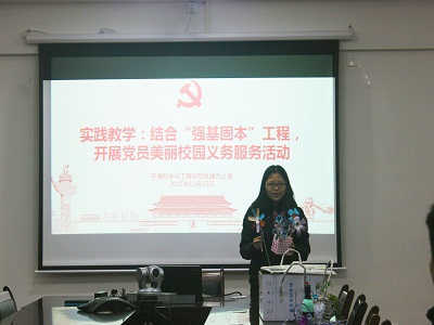 为更好的贯彻党的十九大精神,推进“强基固本”工程建设,让预备党员积极投身基层党支部“强基固本”,增强党性修养,过好预备期,太阳集团2138网址于11月25日上午,在12407教室开展了预备党员美丽校园义务劳动活动。