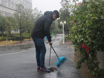 各支部预备党员们在手工制作结束后,又进行了清扫校园活动。12栋教学楼周围的垃圾,被预备党员们清扫得干干净净。校园又因此多了一份洁净的美丽。