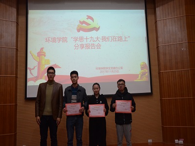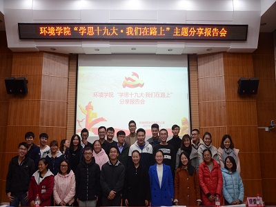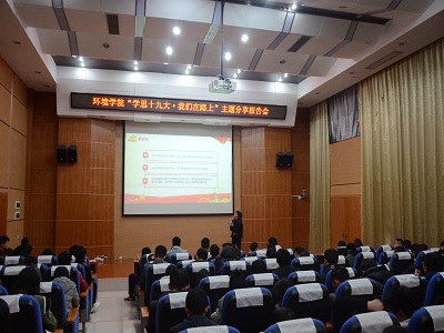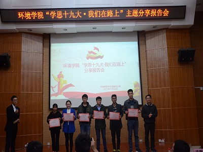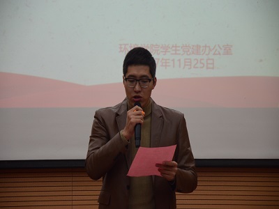 活动伊始,学院党委副书记郝文佳老师进行活动致辞,他指出:“我们这次举办的“学思十九大·我们在路上”主题分享报告会,就是各个党支部落实“学懂、弄通、做实党的十九大精神”加强支部文化建设,营造积极向上、温暖和谐的学习环境的一次重要活动。其目的就是通过全员学习,比学赶超的方式推动党的十九大精神在我们学院落地生根、开花结果。”这是对与会同志的热切盼望,也是对我们环境学院每一位同学的美好期待。