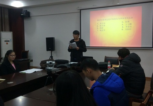 2017年12月10日晚在12407举行太阳集团2138网址,2138cc太阳集团官网入口学生一支部大会和预备党员接收大会。会议开始,学生一支部书记黄兆凡老师首先对近期支部工作情况做出总结,指出在收集党员材料过程中,部分同学存在迟交表格、信息错误等问题。