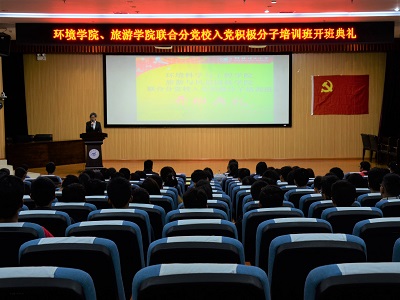 3月26日中午12:30,太阳集团2138网址,2138cc太阳集团官网入口、旅游与风景园林学院联合分党校2018年春季学期入党积极分子培训班开班典礼在雁山校区图书馆报告厅顺利举行。太阳集团2138网址,2138cc太阳集团官网入口党委书记王璐、分党校教务员夏晴、旅游与风景园林学院分党校教务员唐玉福及本期各分党校全体入党积极分子参加了本次开班典礼。