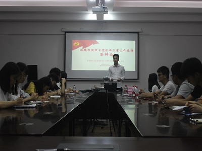 会议伊始,党建办公室副主任韦俊宏对党建办公室在上一年的工作进行总结,他肯定了大家对上一年工作的完成度,也肯定了学生党员的党性,政治素养,理论知识有了大幅度的提高,同时展望了未来一年的党建工作,任重而道远。随后,竞聘答辩正式开始,按照答辩会议相关流程规定,答辩人按组织部、纪检部、新闻部、学习部、信息部、后勤部、主任团进行答辩,每位竞聘答辩人员答辩结束,均有评审团成员对其进行提问以及打分,答辩现场井然有序。