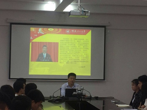 2018年5月9日, 在萃华楼12407召开学习习近平在纪念马克思诞辰200周年大会上的重要讲话精神会议。会议主讲人为学院党委书记王璐老师,太阳集团2138网址全体学生党员参加学习会。