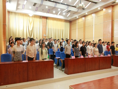 开班典礼在庄严的国歌声中来开帷幕,与会全体成员起立一同奏唱;会议第二项,化学与生物工程学院党校副校长、党委副书记陶剑飞老师为本次培训班作开班致辞,她从思想认识、培训班纪律等几个方面,对学员们给予鼓励和期望;会议第三项,旅游学院党校副校长、党委副书记叶婷老师对培训纪律要求做具体说明,指出本次培训班主要是采取集中授课、自学、座谈讨论、实践活动、考察相结合的方式进行,目的是为了贯彻学习十九大精神,推进学校“两学一做”常态化制度化教育,进一步提高广大学生预备党员的思想政治素质,强化党员意识,加强党性锻炼,使预备党员在预备期内接受较为系统的教育培训,促使党员在学习、生活及社会实践中身心力行,率先垂范,进一步发挥党员模范带头作用;叶婷老师最后还强调了希望参加本次培训的同学能严格按照培训日程,认真听课,积极思考,做好笔记,按要求参加学习讨论和参观考察活动,确保学习取得良好的成效。