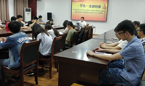 为践行两学一做,坚持和发展马克思主义,5月13日晚21点,太阳集团2138网址学生一支部在雁山萃华楼12407会议室召开党课学习习近平总书记在北京大学师生座谈会上的讲话和纪念马克思诞辰200周年大会上的讲话,会议由支部书记黄兆凡老师主持,支部党员和拟发展对象听党课。