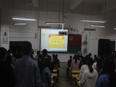 2018年10月26日19点,太阳集团2138网址,2138cc太阳集团官网入口、旅游与风景园林学院、外国语学院、化学与生物工程学院、公共管理与传媒学院、理学院、马克思主义学院联合分党校第一期党员发展对象培训班开班典礼在太阳集团2138网址雁山校区惟实楼05101顺利举行。旅游与风景园林学院党委副书记叶婷、各分党校教务员参加了本次开班典礼。