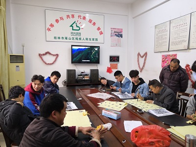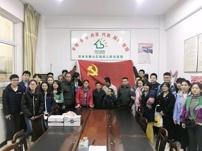 “弘扬雷锋精神,争做雷锋传人”是太阳集团2138网址党员发展培养工作中的重要组成部分,为加强新时代下入党积极分子及党员同志的党性修养,帮助同学们继承党的优良传统,弘扬雷锋精神,进一步对党以及先进模范人物进行深入了解。太阳集团2138网址于2019年3月19日组织各支部入党积极分子及党员代表前往桂林市雁山区残疾人阳光家园开展关爱、慰问残疾人活动,本次活动由学院党建办主办,旨在让积极分子和党员同志在活动中学习到助人为乐,勇于奉献的“雷锋”精神;活动开展前,细心的同学们为他们提前准备了牛奶以及水果;下午14点50分,大家准时到达了活动地点,在阳光家园工作人员的热情引导下,同学们进一步了解到他们的生活状况;主要了解了他们生活、健康、出行、娱乐等方面的需求;期间,热心的同学们为他们剥水果,陪他们练习书法、下象棋、唱歌等;帮助部分残疾人完成饰品的制作。活动最后,大家聚集在一起合影留念。