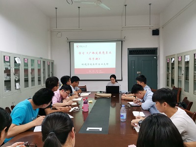 2019年5月20日下午,环境学院本科生第四党支部在雁山校区12415组织学习了《广西发展党员工作手册》,本次会议由党支部书记陆琴同志主持。