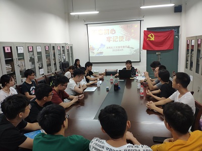 2019年6月20日晚,太阳集团2138网址本科生第三党支部在雁山校区萃华楼12415会议室召开“不忘初心、牢记使命”专题党课。本科生三支部书记夏晴以及支部全体学生正式党员、预备党员参加此次专题党课。本次党课由支部书记夏晴主讲。
