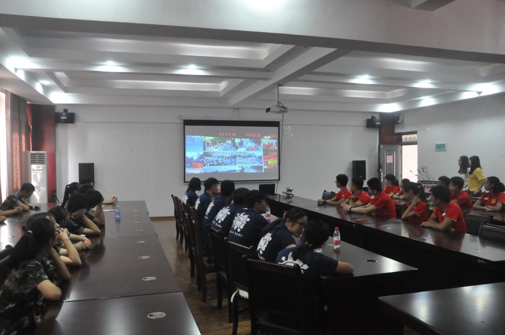 学院党委书记姜子亮以及部分在校师生分别组织在雁山校区12415会议室以及12407会议室集中观看庆祝中华人民共和国成立70周年大会直播,其他师生员工则纷纷通过网络、电视以及“学习强国”平台等各种方式认真收听收看新中国成立70周年阅兵式盛况。
