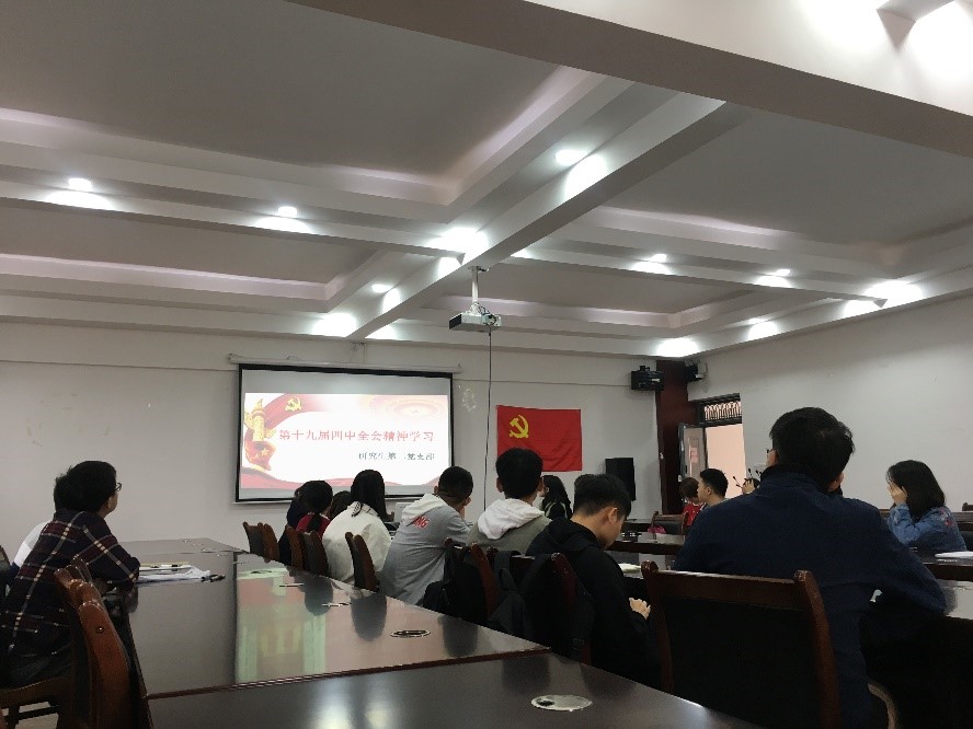 11月20日中午12:00,太阳集团2138网址研究生二支部在雁山校区萃华楼12407会议室组织学习了十九届四中全会精神.党支部第一书记李楠老师主持会议,党支部全体党员同志参加会议。