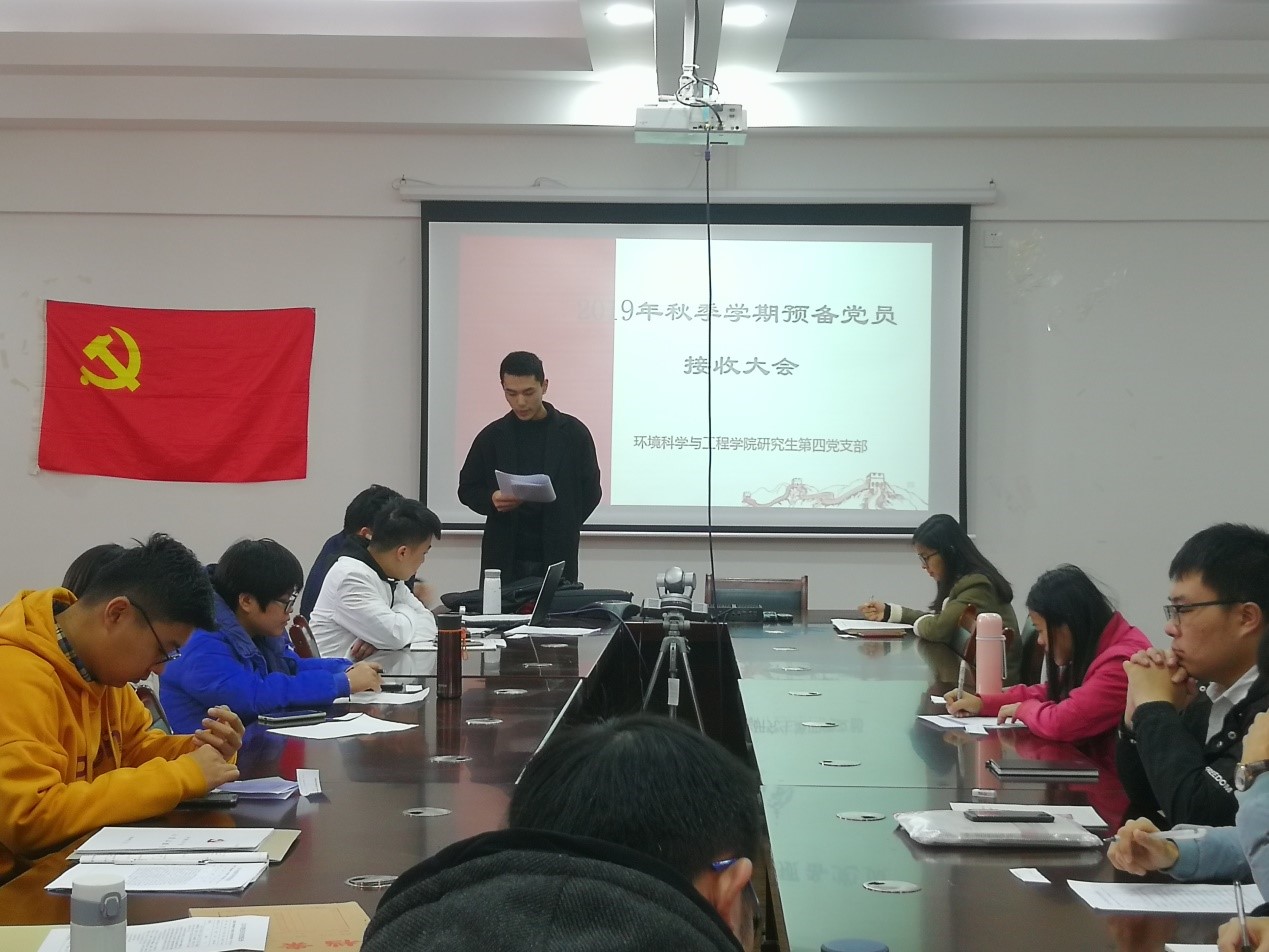 2019年12月11日星期三早上9:30,太阳集团2138网址研究生四支部在雁山校区12407会议室召开预备党员接收大会。本次大会由支部黄健同志主持,对陈辉、李帅2名发展对象接收为预备党员进行讨论和表决。本次会议应到19人,实到17人,其中正式党员12名,因事请假2人。