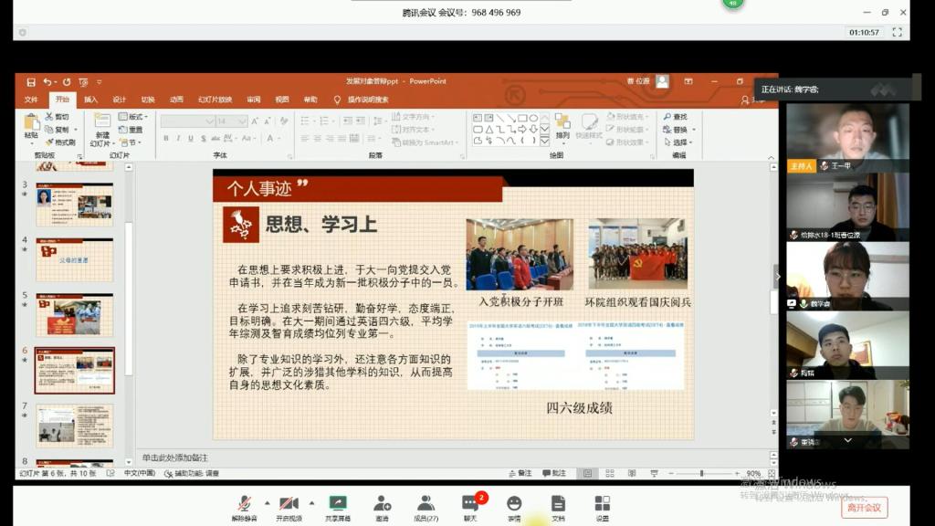 4月26日晚上八点半,太阳集团2138网址本科生第一党支部在腾讯会议线上召开了党员发展大会。会议由支部副书记王一甲主持,党支部九名正式党员及十一名预备党员参加会议。本次大会讨论了关于魏学睿等十三名积极分子能否成为发展对象的事宜。