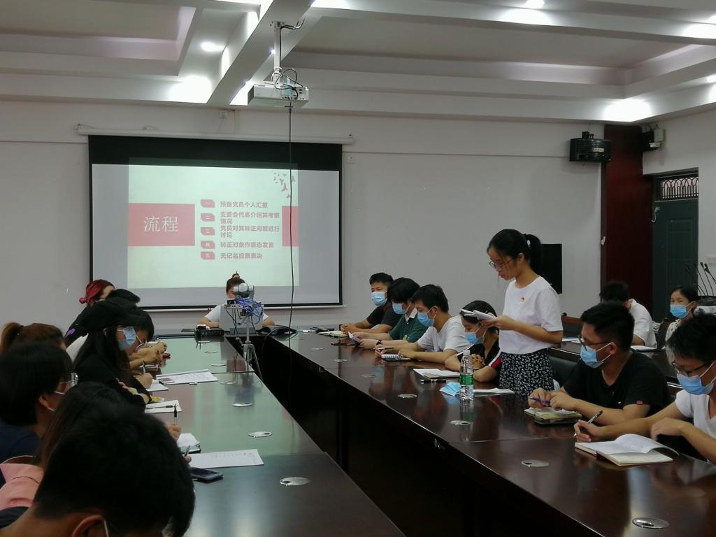 会议开始,由支部书记罗美养介绍此次发展对象接收会的流程及相关事项。随后卢韦唯、黄全晶、黄青霞、黄计飞、王一甲5名预备党员分别就各自的思想、学习、工作、生活等方面向组织做出汇报。支委对与会人员介绍培养考察期情况,与会党员就五位预备党员的转正决议进行充分讨论。支部正式党员以不记名投票的方式进行投票表决。经投票表决,大会宣布同意卢韦唯、黄全晶、黄青霞、黄计飞、王一甲按期转为中共正式党员。
