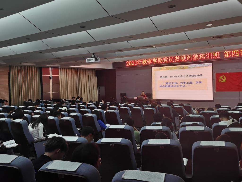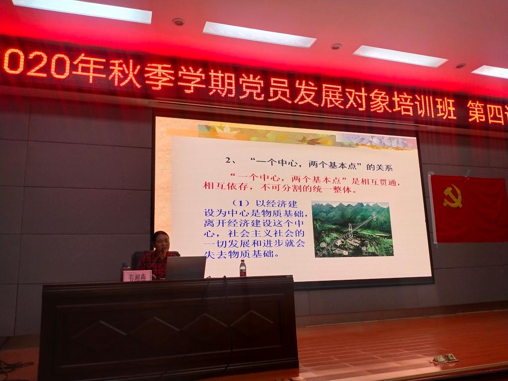 10月28日晚,在01501会议室,马克思主义学院韦湘燕老师为联合分党校2020年秋季学期党员发展对象培训班,做《中国共产党的基本路线和纲领》专题党课。
