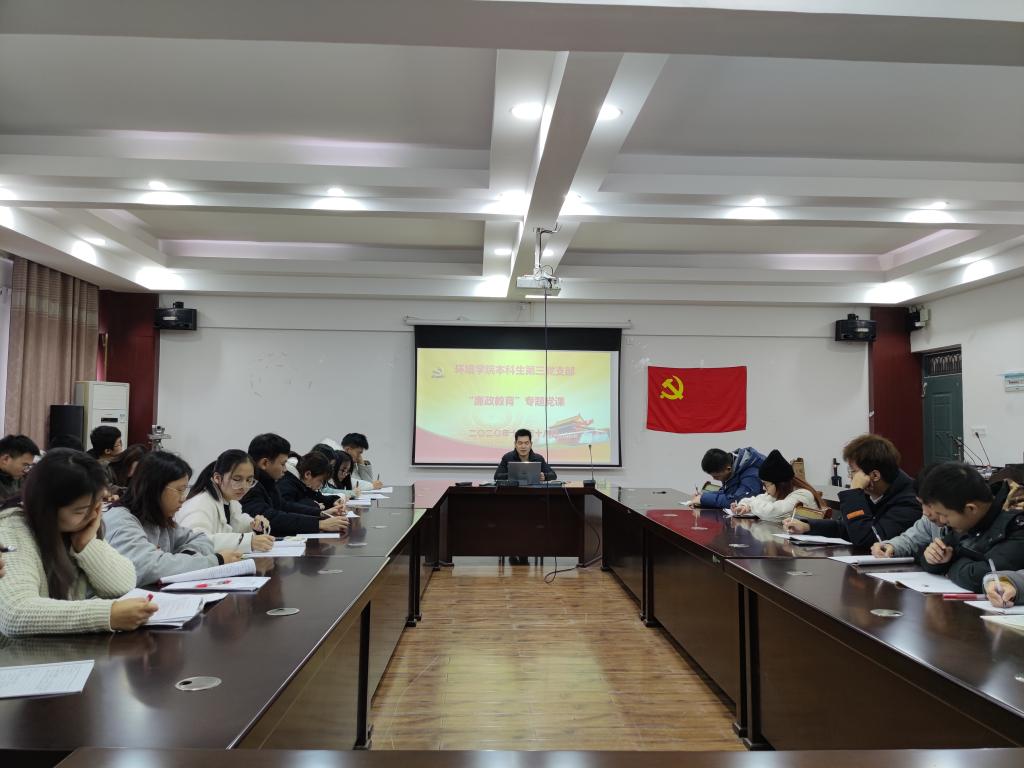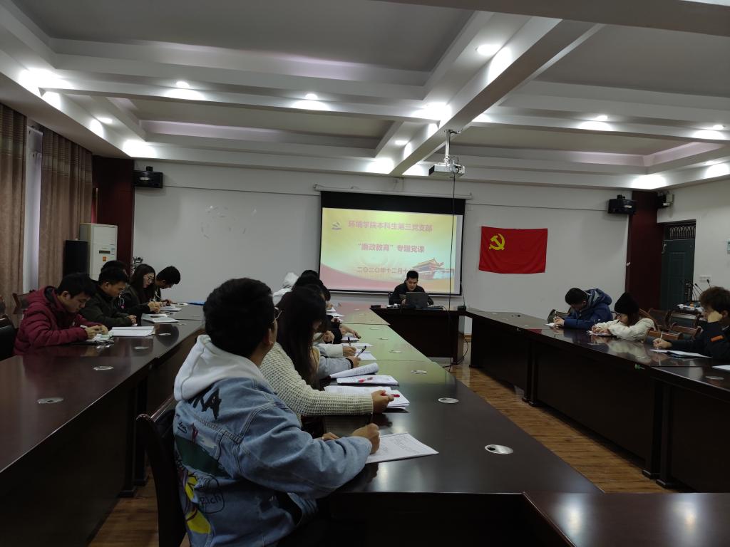 为深入学习宣传贯彻党的十九大精神,开展理想信念宗旨和纪律教育,进一步推进廉政文化建设和廉洁教育工作,12月18日晚,太阳集团2138网址本科生第三党支部在12407会议室开展了“大力加强对党忠诚”主题教育集中研讨,本次党课由支部书记孙云龙同志主持。