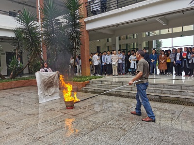 首先,王敦球副校长作消防安全演练动员部署讲话。他指出:消防安全演练是提升师生安全防范意识和提高自救逃生能力的重要举措,要从思想认识和措施行动上充分认识消防安全的重要性和必要性,提高消防安全工作的责任感、警觉性和预见性,以饱满的精神、积极的姿态有条不紊地投入演练。